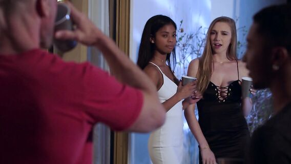 Проснувшись поутру в постели с девушкой и парнем, развратница устраивает с ними неплохой разврат. Между ними происходит жмж секс с негритянкой и ее подругой блондинкой до спермы.