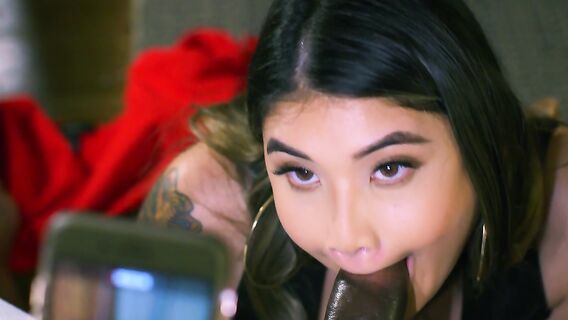 Негр с огромным болтом трахнул чужую жену азиатку и кончил в пизду